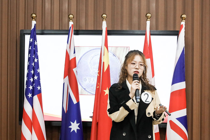 本次比赛面向出国留学培训基地英语区全体学生,吸引了各个年级、不同出国留学项目学生的积极参与,经过前期初赛的选拔,共有10名选手入围决赛。比赛选手以“我的中国心”为主题,各抒己见。比赛过程中,选手们情绪激昂,将爱国热情融于外语表达,相辅相成,相得益彰,激发了台下观众的澎湃热情。演讲内容或立足于时代格局,或以自身出发,全方位、多角度表达了爱国热情,以自信的姿态与流畅的英文展现了当代大学生的风采。